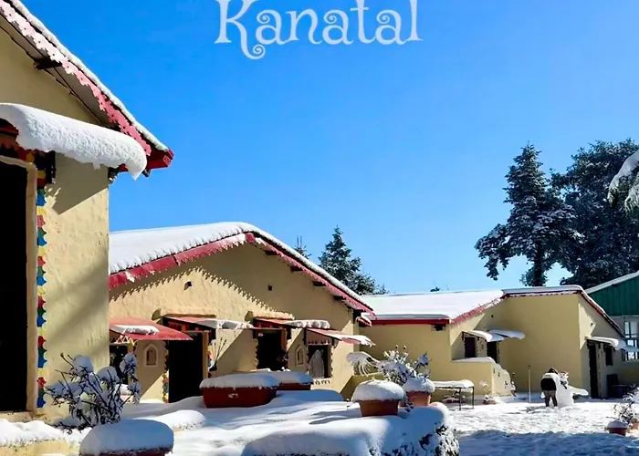 Das 3-Sterne-Kana Mud An Ethnic Village Resort - Beautiful View Of Gangotri Mountains Kanatal bietet seinen Gästen 8 Zimmer und liegt etwa 4 km vom Surkanda Devi Tempel entfernt. Auf dem Gelände gibt es ein Restaurant.